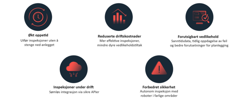 Den fyrbenta roboten ANYmal samlar in termisk, akustisk, visuell och gasrelaterad information och tolkar data i realtid. Med hjälp av AI baserad navigering och en robust konstruktion opererar ANYmal autonomt under krävande väderförhållanden och i komplexa anläggningar.